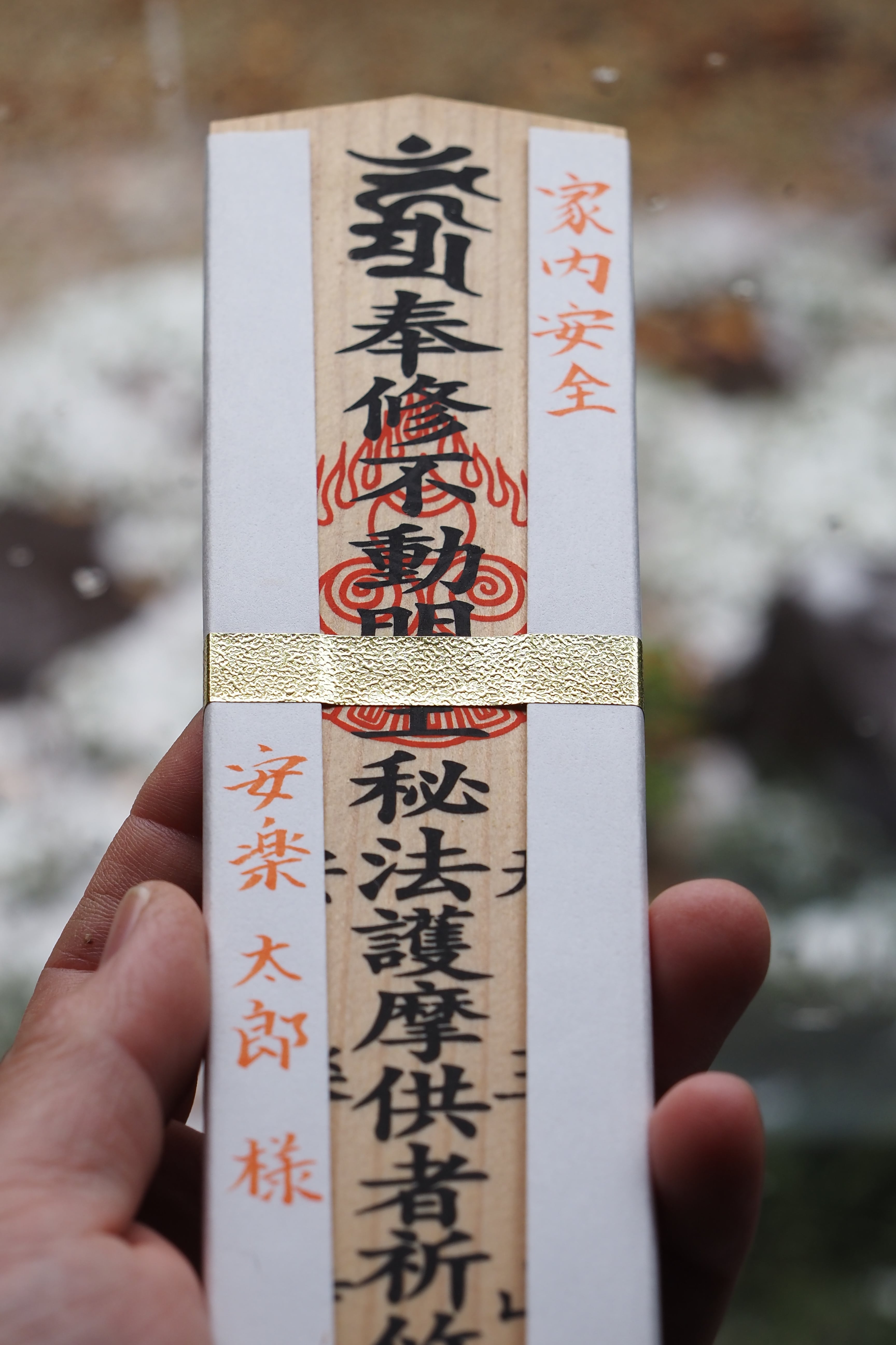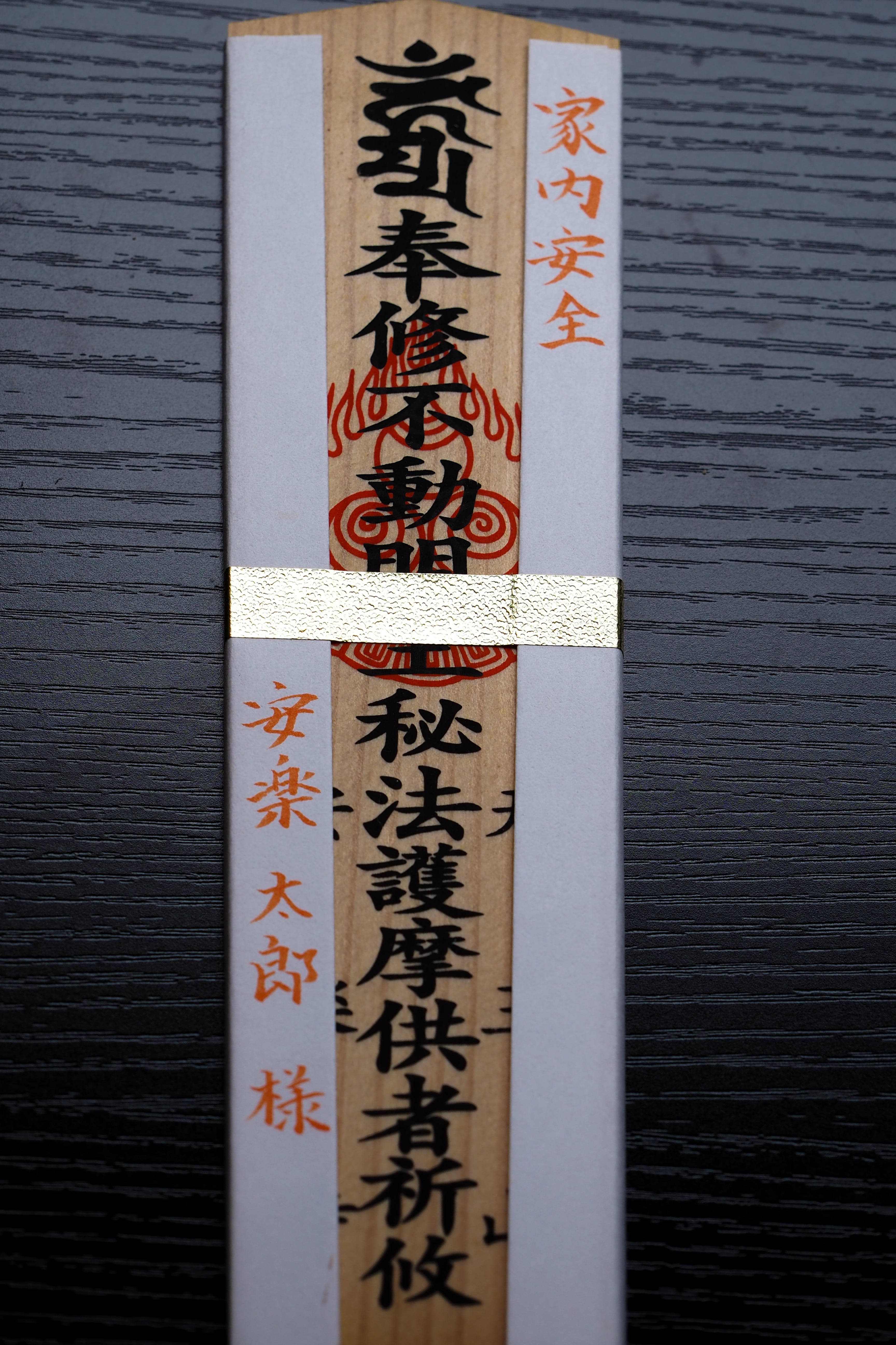 お申込みくださった御祈願について、護摩祈祷札に、お名前や願意を書き入れ、護摩の炎にかざし加持祈念を致します